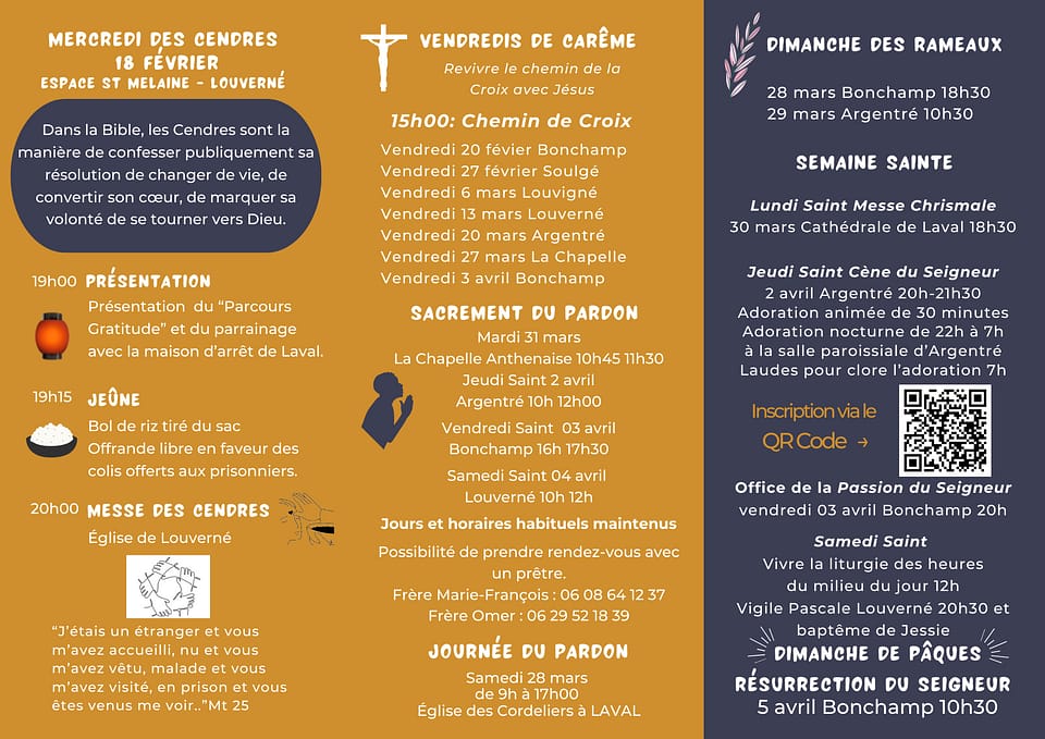 Le carême représente la période de quarante jours qui précède Pâques. Ce temps de préparation est également un temps de conversion intérieure où le chrétien, par la pratique du jeûne, de la prière et de la charité, est appelé à revenir vers Dieu et à s’ouvrir aux autres.